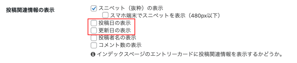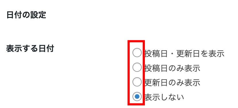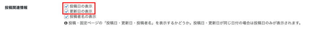 日にちを表示させたい場合は、投稿日と更新日を編集してください。