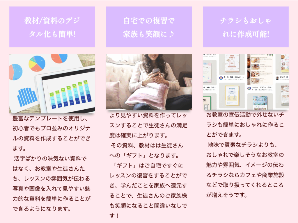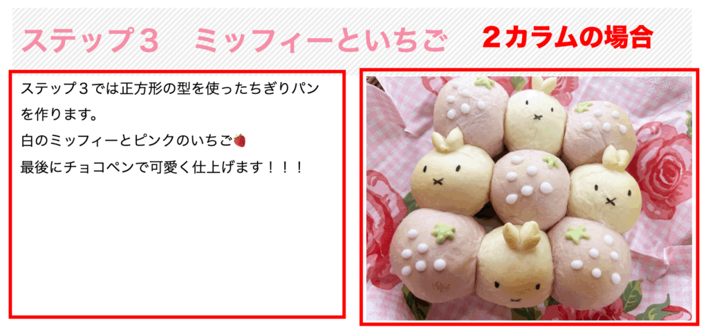 このように3カラムで見出しと写真と文章で書いてあるとわかりやすいですよね!!!