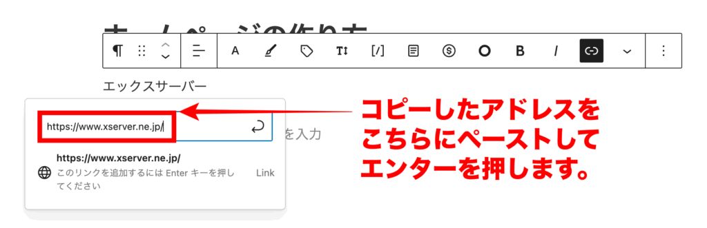 ここにアドレスをペーストし、エンターを押せばリンクできます。