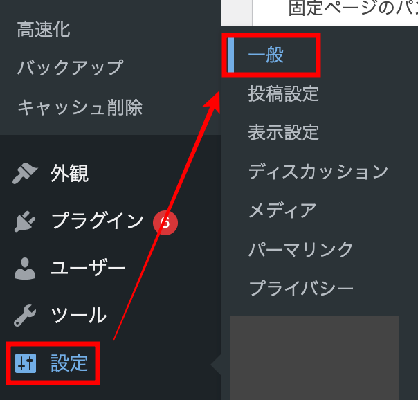 設定から一般を開きます。