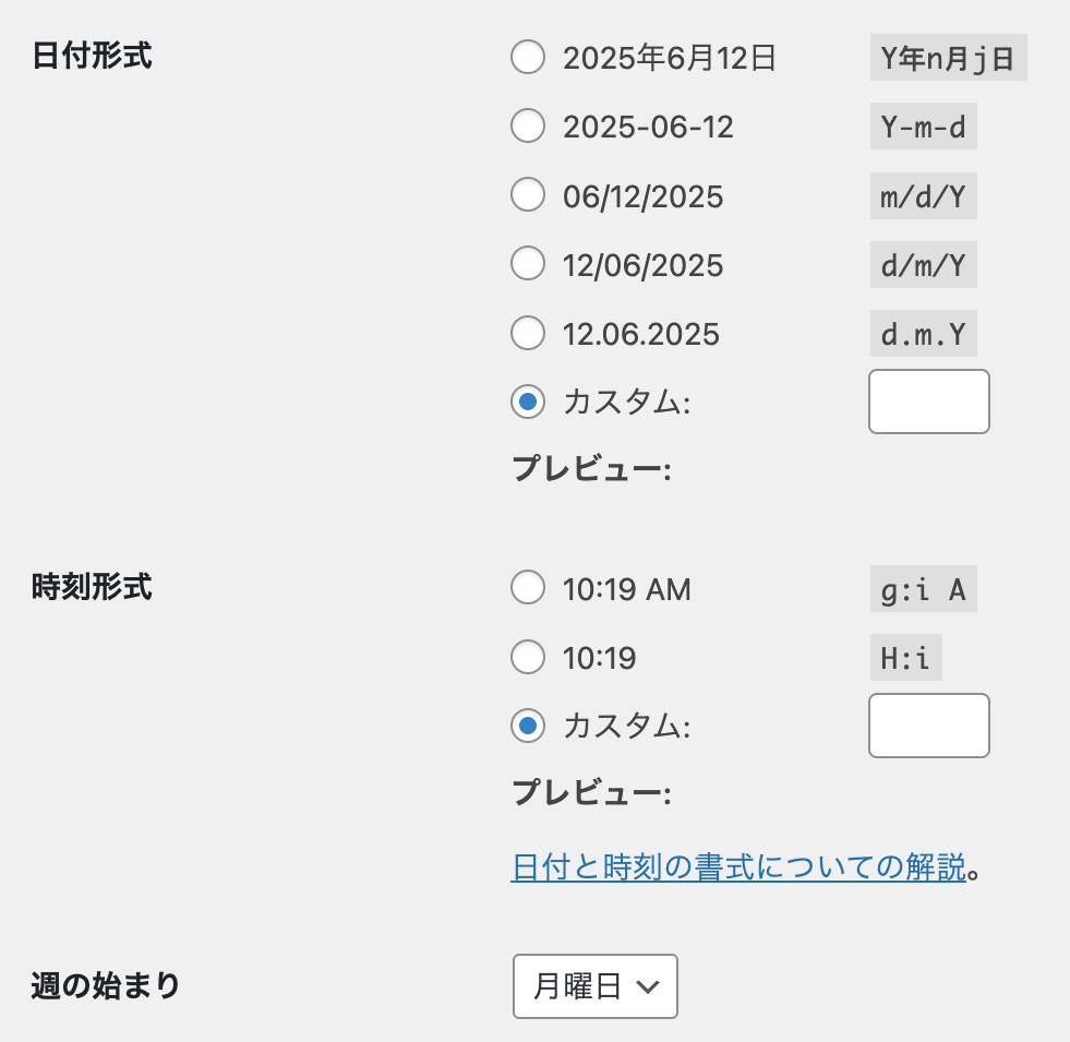 一般では、日付と時刻の表示方法が選べます。